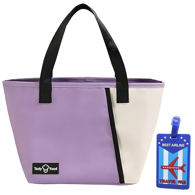 OCEANEVO Small Insulated Tote Lunch Bag for Office with Luggage Tag, Tiffin Bag for Men and Women for Home and Travel – 22.5 x 14 x 21 Cm – Purple