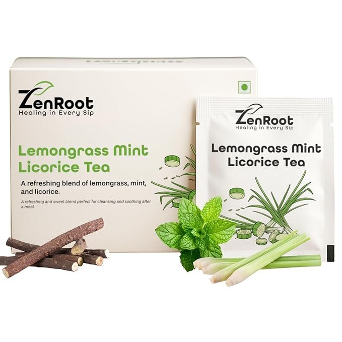 - Refreshing Zesty-Sweet Herbal Fusion: Zenroot Lemongrass Mint Licorice Tea is a lively blend that combines the bright citrusy notes of lemongrass with cooling mint and natural sweetness from licorice. Each sip is a crisp, invigorating escape that refreshes both mind and body.